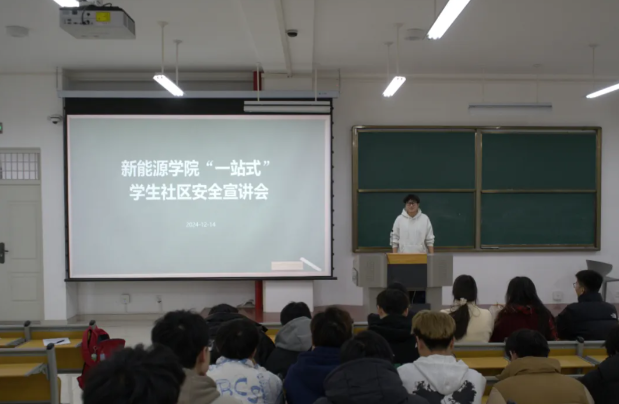 为进一步加强学生安全教育工作,扎实推动“一站式”学生社区平安建设,将学生安全服务下沉到社区,筑牢安全防线,12月14日,我院组织“一站式”学生社区学生及大一宿舍舍长在子洲楼325开展大学生安全教育主题讲座,“微光”宣讲团成员何知衡、杨博分别就校园安全、心理健康、交通安全及网络安全进行宣讲。