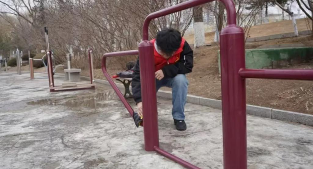 下午2时许,队伍转战榆溪河公园,以"分段包干"形式对河滩开展地毯式清理。志愿者们手持可降解垃圾袋,沿河岸捡拾塑料瓶等杂物,并现场进行垃圾分类。在健身器材区,队员们逐一擦拭器械扶手。春寒未消,但红马甲们忙碌的身影引得晨练市民频频点赞
