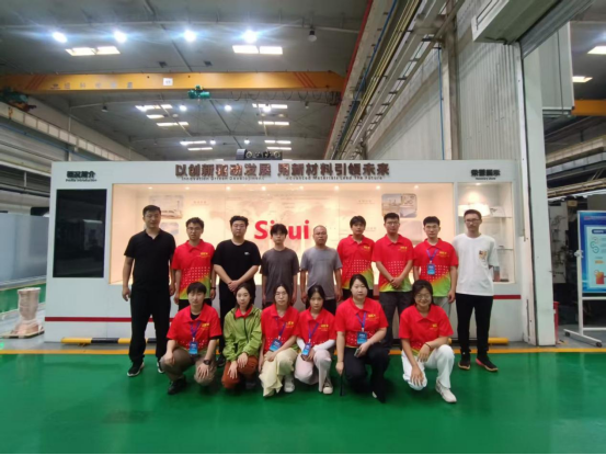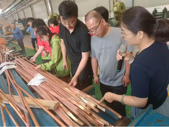 在陕西斯瑞新材料股份有限公司相关负责人的陪同下,王旭东、白海强一行深入企业生产车间,实地考察了铜基复合材料的制造过程。从原材料熔炼、半连续挤压成型,到精密机加工及最终产品检测,学院教师详细了解了企业的生产工艺、技术优势及行业应用场景。企业技术人员现场讲解了高性能铜基复合材料在新能源、电力电子等领域的关键作用,并介绍了企业在技术创新和智能制造方面的最新进展。