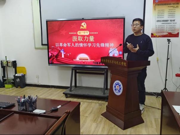 10月19日晚上,化工院吕波以“汲取先锋力量,坚定初心使命”为主题,介绍了疫情期间钟南山、张伯礼、张定宇、陈薇等抗疫楷模的先进事迹,共同学习了战疫先锋为国为民、不辱使命的高尚情怀。鼓励学生汲取正能量,不忘初心,牢记使命,严于律己,让青春在社会主义现代化建设的伟大实践中绽放绚丽之花。