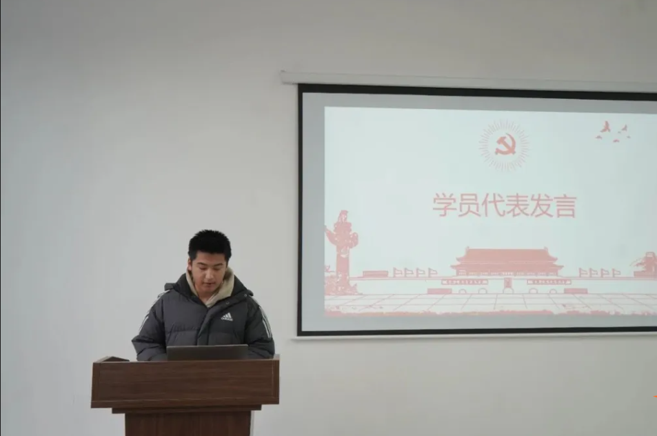 高明华同学作为优秀学员代表,回顾了这段充实且意义非凡的培训时光,表示通过党课培训,不仅了解了入党流程,端正了入党动机,更认识到了党员先锋模范作用的重要性,表示身处这个伟大时代,承载着国家和民族的期望,将以所学知识为剑,以拼搏奋斗为盾,在科技创新、文化传承等诸多领域贡献自己的力量,不负韶华,不负时代赋予的重任。