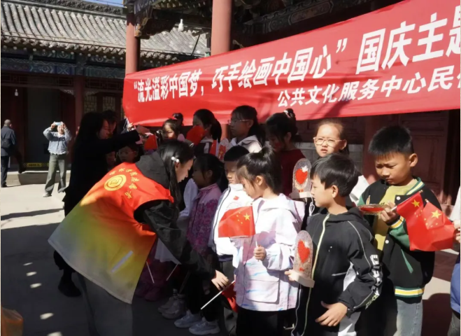 志愿者们以温暖的笑容和亲切的话语组织引导小朋友们有序进入展厅参观。博物馆装饰着五星红旗和节日的彩带,营造出了浓厚的节日氛围。博物馆的工作人员用生动的语言为小朋友们讲述着陕北民俗文化的独特魅力,从古老的剪纸艺术到精美的刺绣作品,从传统的泥塑技艺到独特的民俗风情,每一个细节都深深地吸引着小朋友们的目光。志愿者们则在一旁细心地照顾着小朋友们,确保他们能够安全、有序地参观每一个展区。他们不时停下脚步,为小朋友们答疑解惑,帮助他们更深入地了解榆林当地民俗文化。