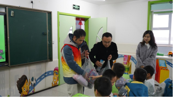 我院师生将提前精心准备好的20册科普读物、文具袋、铅笔、橡皮和卷笔刀等学习用品亲手送到孩子们手中,表达对孩子们的深切关怀和美好祝愿。