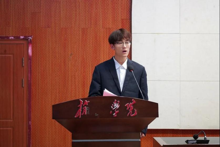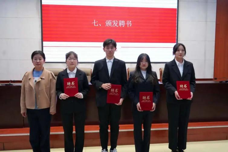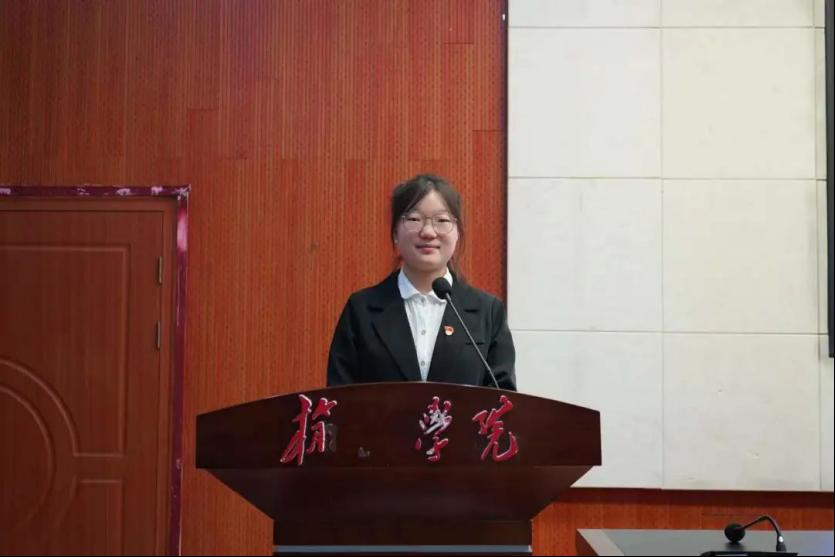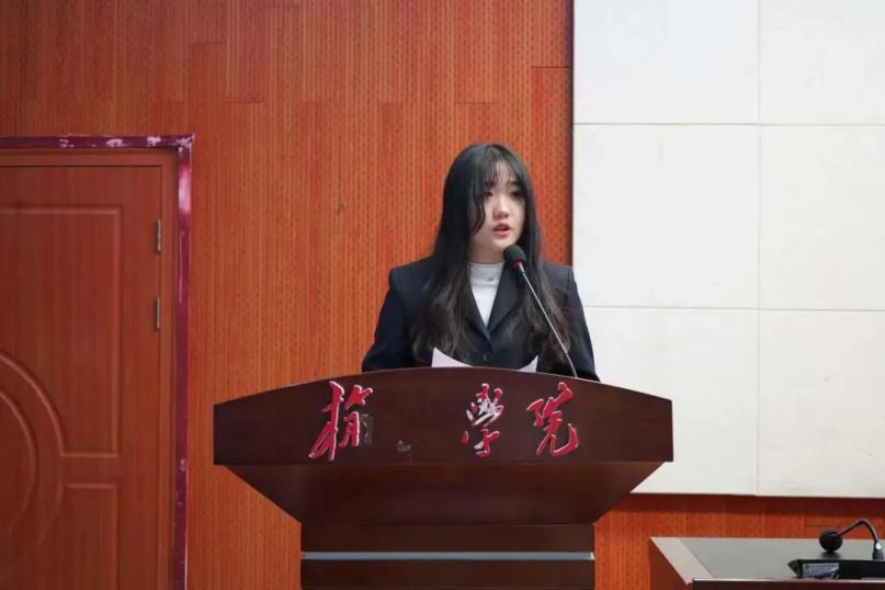 第一届团总支学生会主席团负责人任文婧作就职演讲,表示将加强学生会的自身建设,推陈出新,深化改革,大胆创新,锐意进取,为学院的发展和同学们的成长贡献力量。